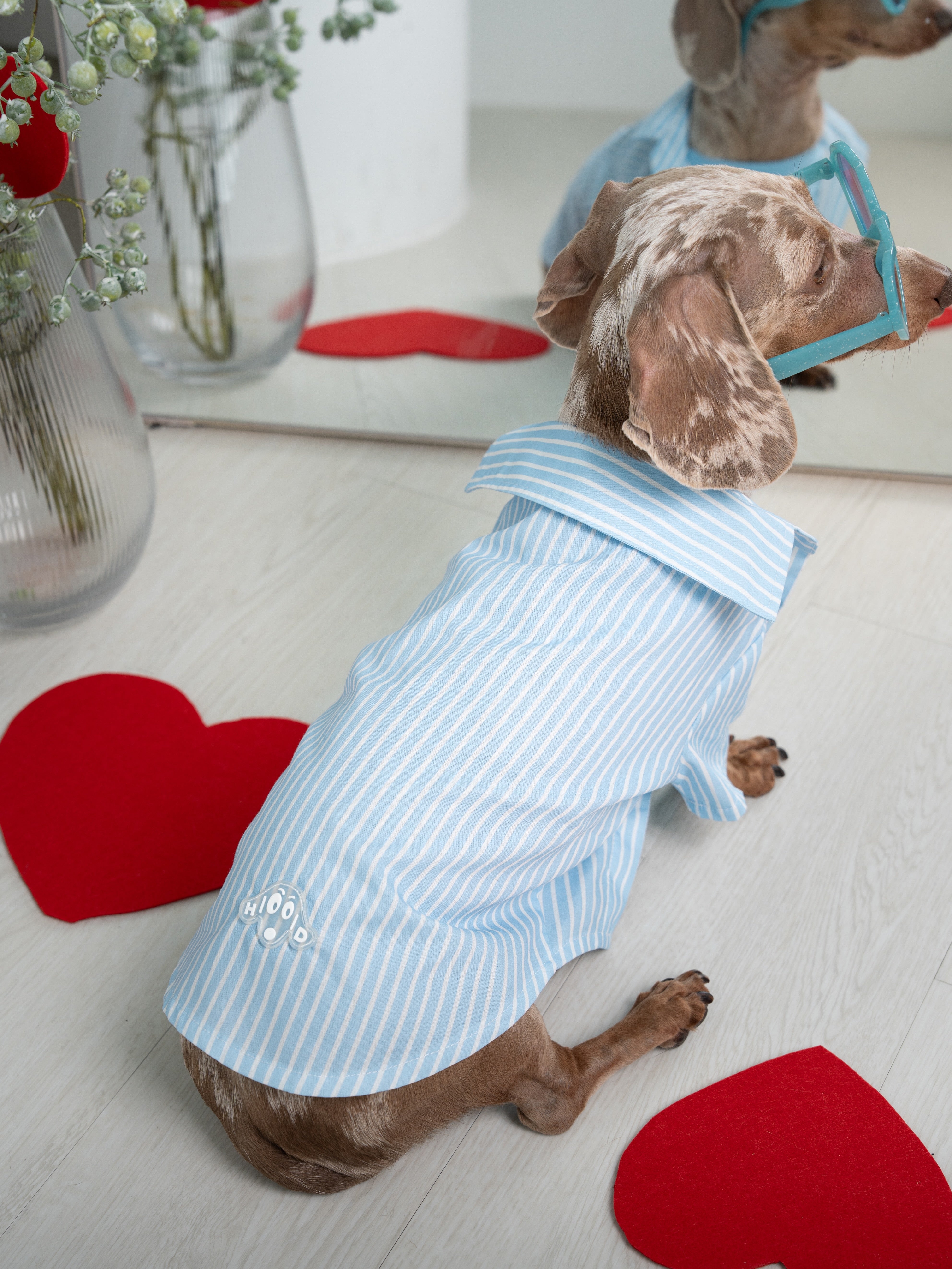 A small embroidered heart sits along the sleeve, placed where it belongs for dogs who wear their hearts on their sleeves.